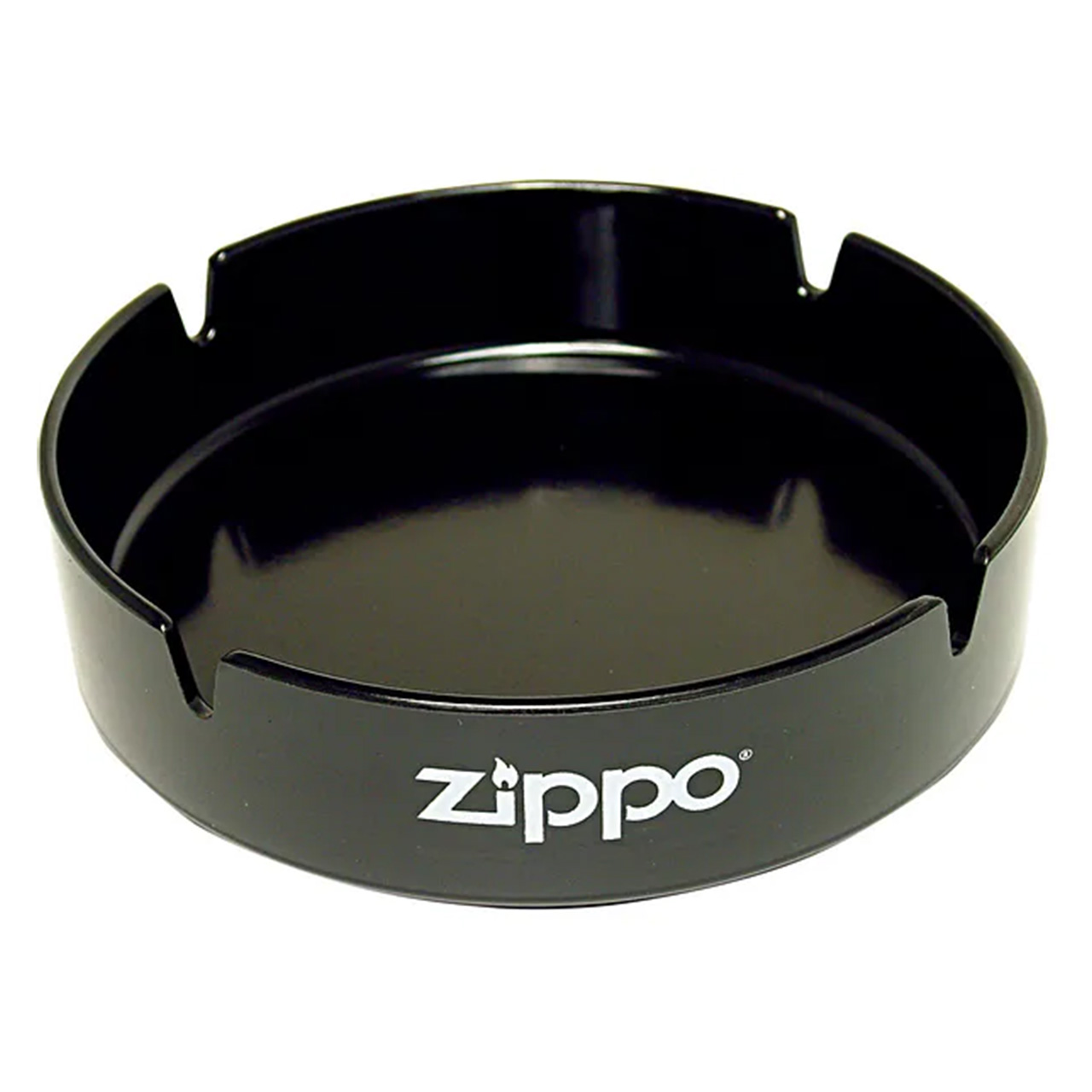 Cenicero duradero con el logotipo de Zippo. Plástico negro con logo Zippo blanco. 5,25″ de diámetro