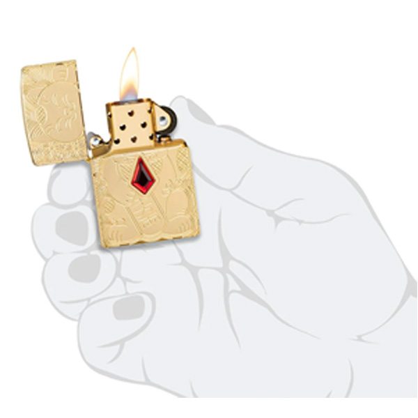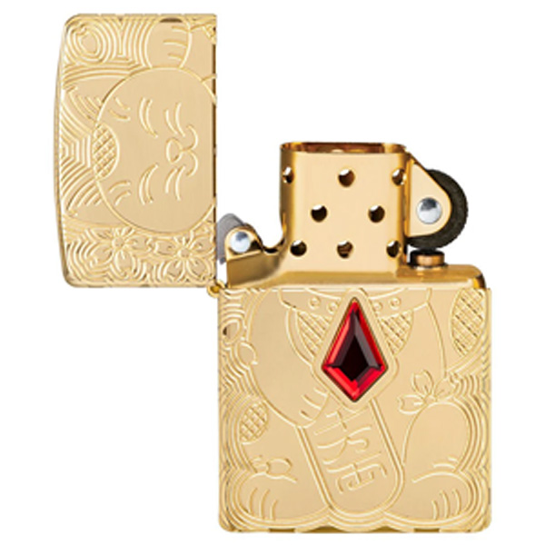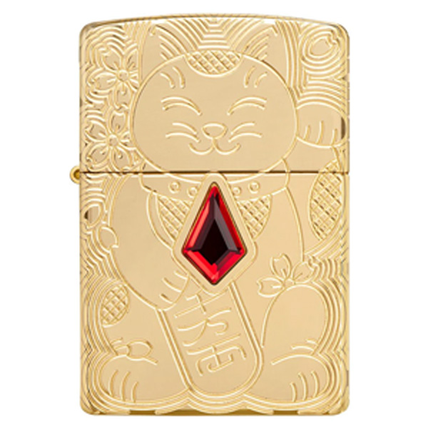 Reconocido mundialmente como un símbolo de buena fortuna, el diseño del Gato de la Suerte de este encendedor Armor® de latón pulido se logra mediante nuestro proceso de tallado profundo y está rematado con una joya roja. Se presenta en una caja de regalo. Para un rendimiento óptimo, llénelo con gasolina para encendedores Zippo.