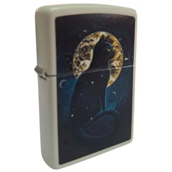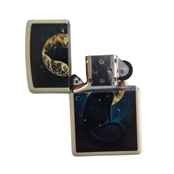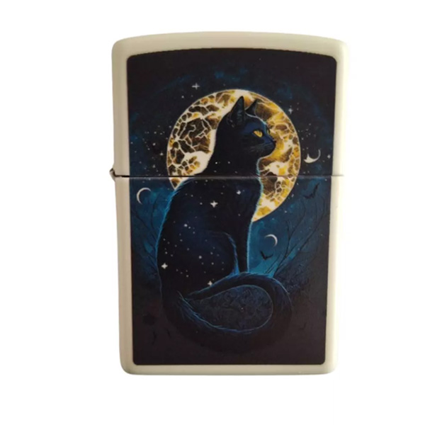 Sorprendente con este encendedor blanco mate de gato y luna a prueba de viento “Galaxy Cat Design”. Viene en una caja de regalo. Para un rendimiento óptimo, llénalo con gasolina para encendedores Zippo.
