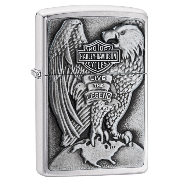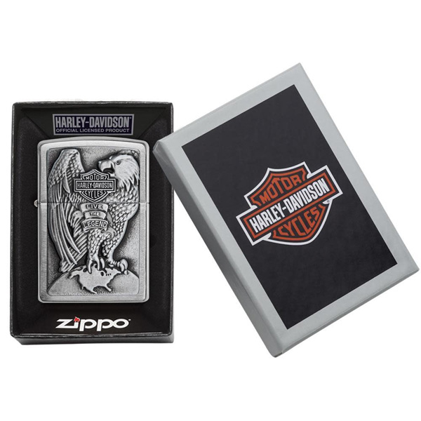 Este encendedor de cromo pulido lleva un emblema de Harley-Davidson. Viene en una caja de regalo. Para un rendimiento óptimo, llénelo con gasolina para encendedores Zippo.