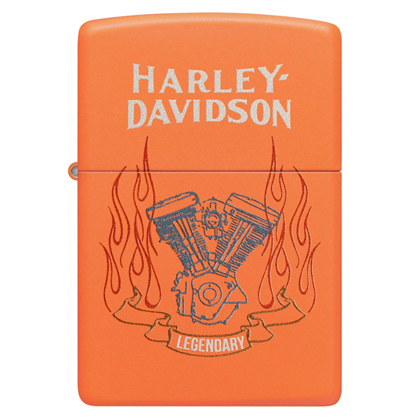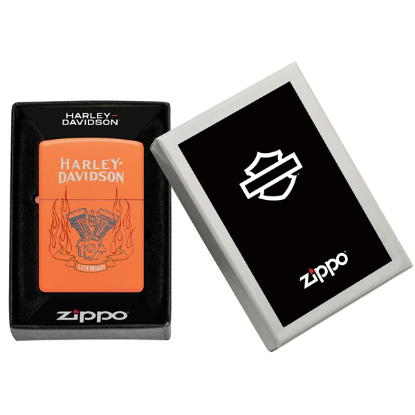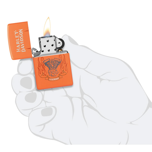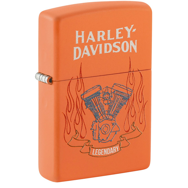 El icónico logotipo de Harley-Davidson con su escudo y barra, en un audaz diseño Color salmon, en este encendedor. Viene en una caja de regalo. Para un rendimiento óptimo, llénelo con gasolina para encendedores Zippo.