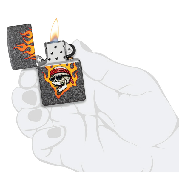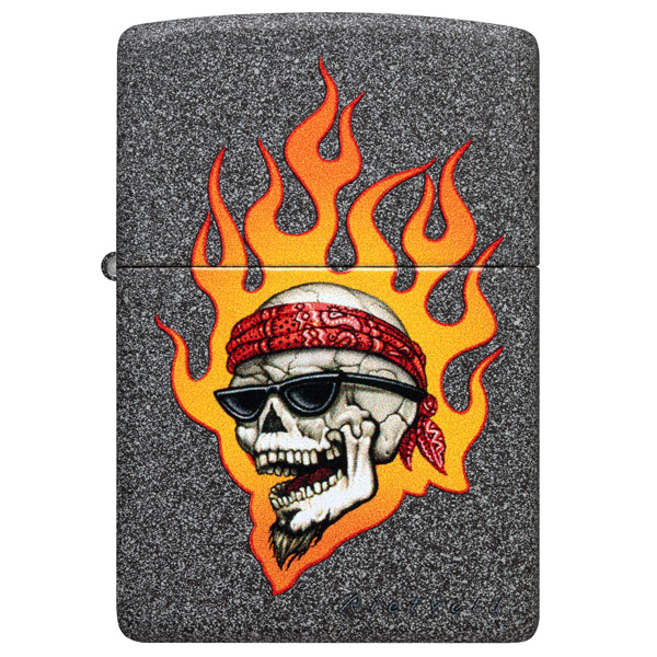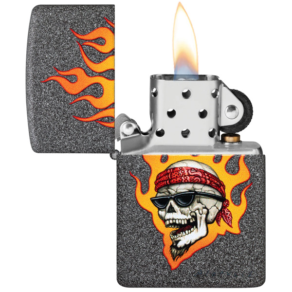 El icónico arte de Rick Rietveld cobra vida en este clásico encendedor Iron Stone. El vibrante diseño Color Image presenta una calavera sonriente rodeada de llamas vibrantes y parpadeantes. Se presenta en una caja de regalo. Para un rendimiento óptimo, rellénelo con combustible para encendedores Zippo.