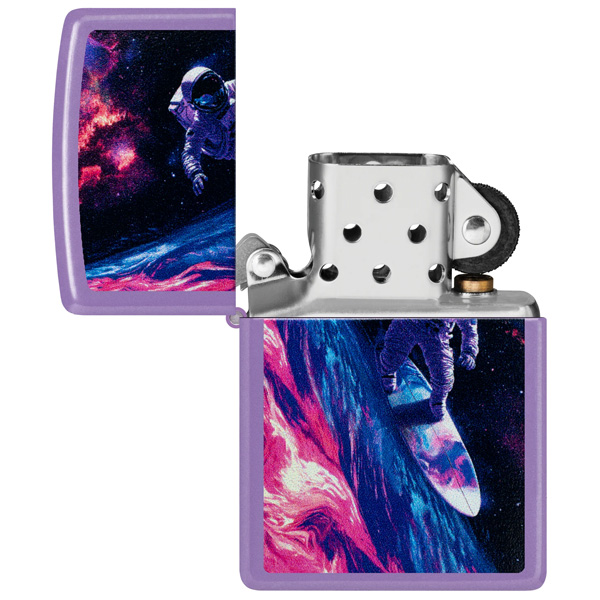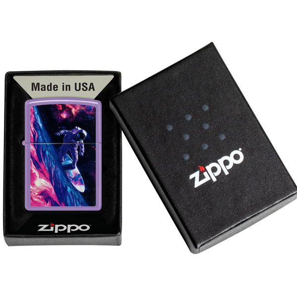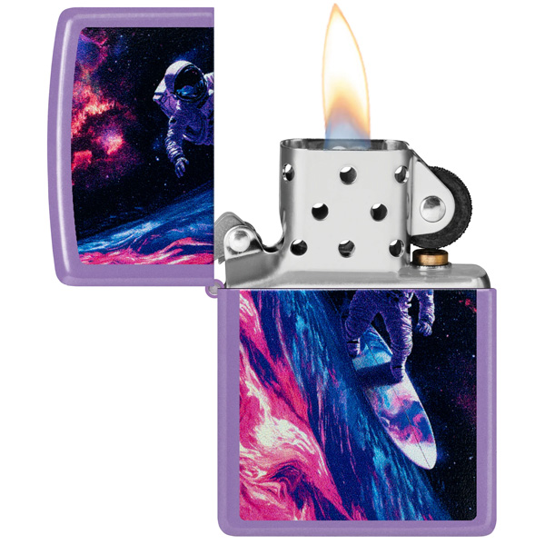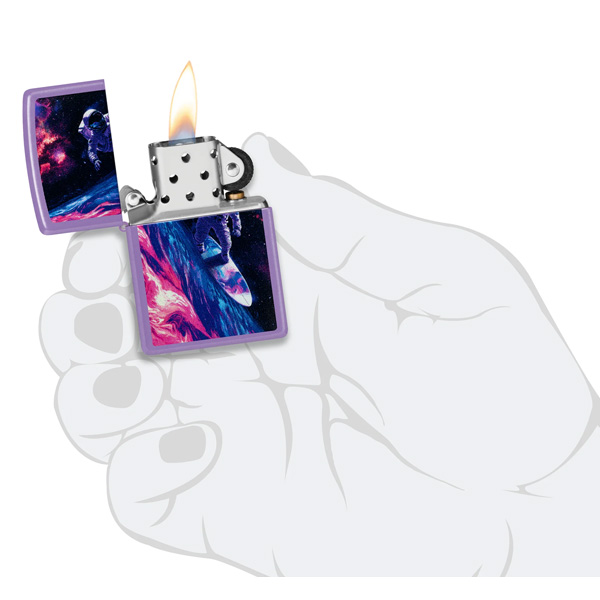 Navega por el cosmos con este clásico encendedor Lavanda Ahumada. Un valiente astronauta navega por la Vía Láctea en el onírico diseño Color Image. Viene en una caja de regalo. Para un rendimiento óptimo, llénalo con gasolina para encendedores Zippo.