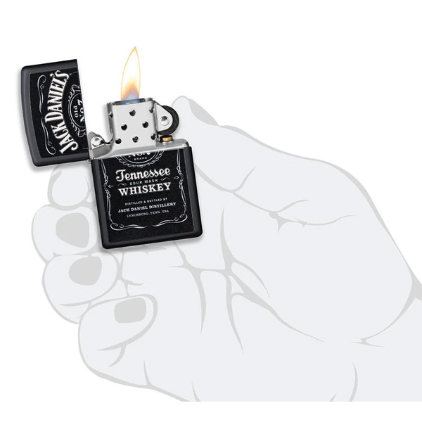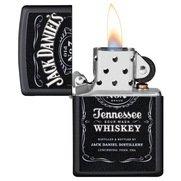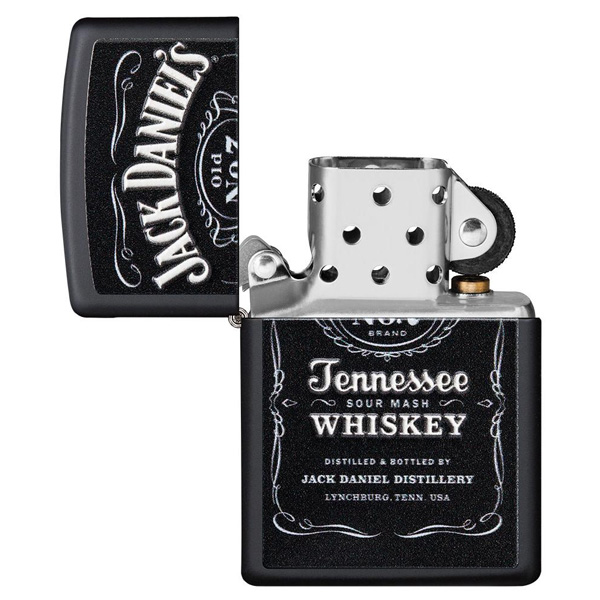 Celebra el mejor whisky de Tennessee con este encendedor Jack Daniel’s® .  Partes de la etiqueta del whisky Jack Daniel’s® Old No. 7 están impresas con textura en un encendedor negro mate. El proceso de impresión con textura de Zippo da vida a este diseño con una irresistible textura 3D, adherida de forma duradera al encendedor. Viene en una caja de regalo. Para un rendimiento óptimo, llénalo con combustible para encendedores Zippo.